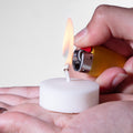 Ein Teelicht entzünden, auf hitzebeständige, ebene Flächen stellen und zugfrei brennen lassen. Abstand zu Gegenständen halten, Kinder und Haustiere fern. Nicht unbeaufsichtigt brennen lassen. Flamme durch sanftes Ausblasen oder Löscher ersticken.