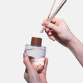 Der Raumduft arbeitet ganz ohne Strom: Die Papierstäbchen saugen die Duftflüssigkeit auf und geben sie gleichmäßig an die Raumluft ab. Je mehr Stäbchen, desto intensiver. Das Profil bleibt sinnlich-edel, ideal für Wohnzimmer, Flur oder Home-Office. Als sichere Alternative zu Kerzen.