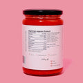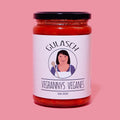 Inhaltsstoffe: Sojawürfel (Soja) (32,4%), passierte Tomaten, Paprika (rot), Wasser, Zwiebel, Öl, Gemüsebrühe (trocken), Vegranny´s Gewürzmischung - (Paprika edelsüß, Knoblauch, Chili, Salz, Kümmel, Pfeffer, Majoran, Rosmarin, Petersilie, Piment, Nelken, Thymian), Salz (0,1%)